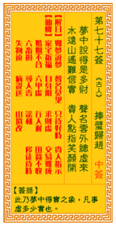 观音灵签77 捧璧归赵