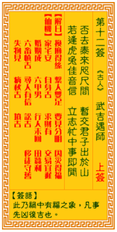 观音灵签12 武吉遇师