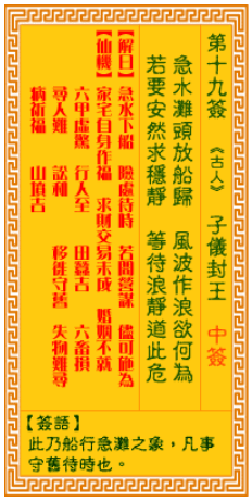 急水下船。险处待时。若问营谋。尽可施为。(签诗与故事不符)