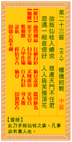 欲扳仙桂入蟾宫,岂虑天门不任君;忽遇一般音信好,人人欢笑领顶花。