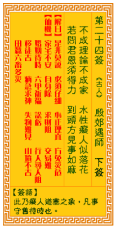 此签意味,若想要把事情弄成,一些基本条件不可少。但是人性往往庸碌,不得要领,因此谋求不能得力,而且还把事情弄得乱纷纷。