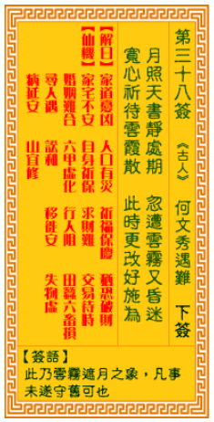 月照天书静处期,忽遭云雾又昏迷;宽心祈待云霞散,此时更改好施为。
