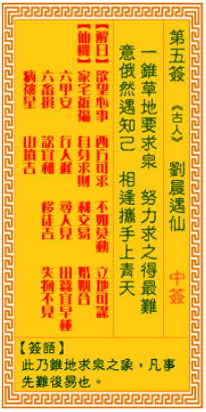 本签示意,若有所营谋,自己也当勤奋,务实的经营,这才能让果实快点来临。而求得本签,也代表在生命旅途中,能遇到知己,这是你爱情或事业的伙伴,也是迈向成功的合伙者。