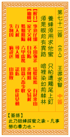 此卦结蜂采蜜之象,诸事劳心费力。此卦求甜得苦之象凡事防范灾殃