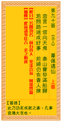 忽言一信向天飞,泰山宝贝满船归;若问路途成好事,前头仍有贵人推。